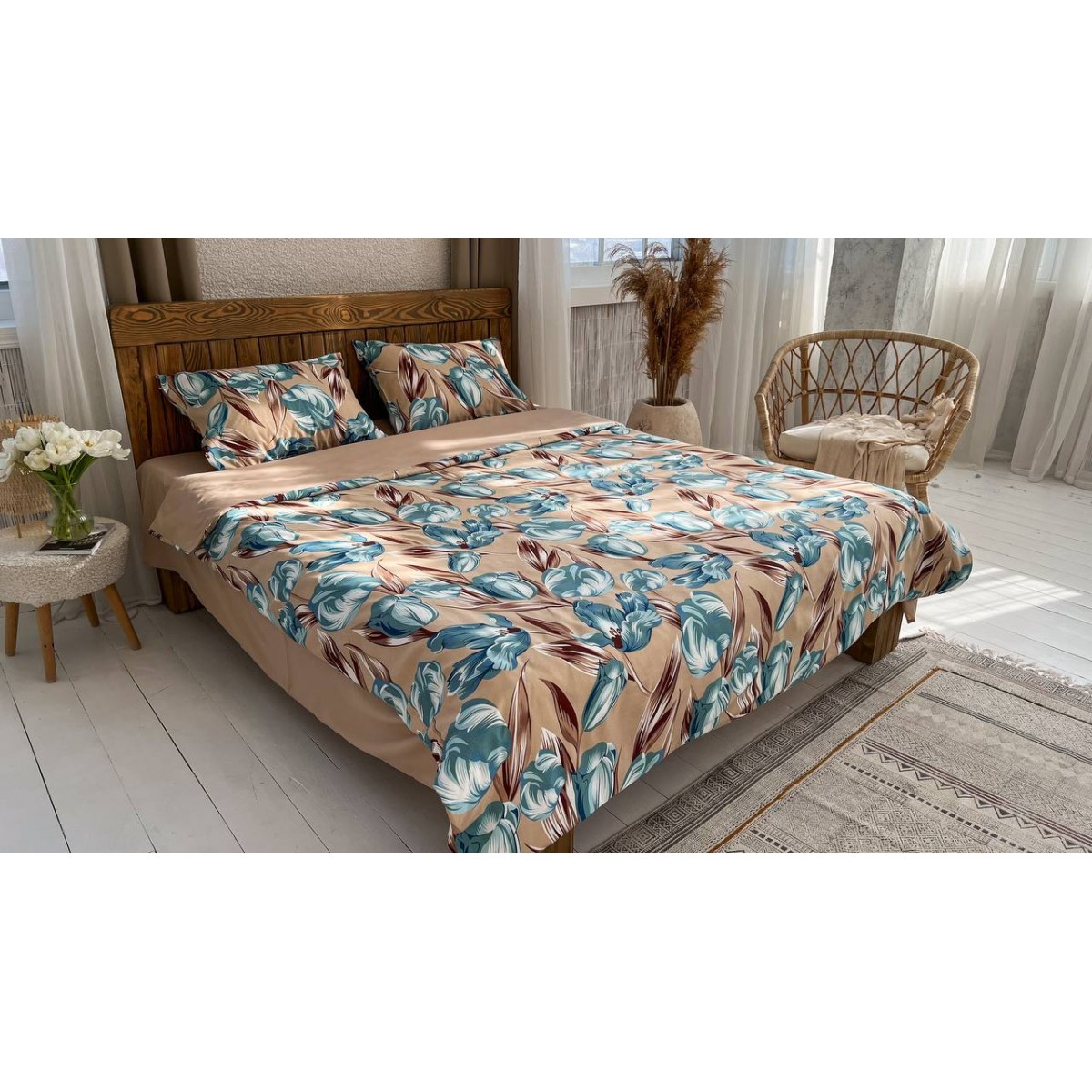 Цей комплект постільної білизни розміром 1.5 (півтораспальний) створений для тих, хто цінує комфорт та якість. До складу входять всі необхідні елементи: